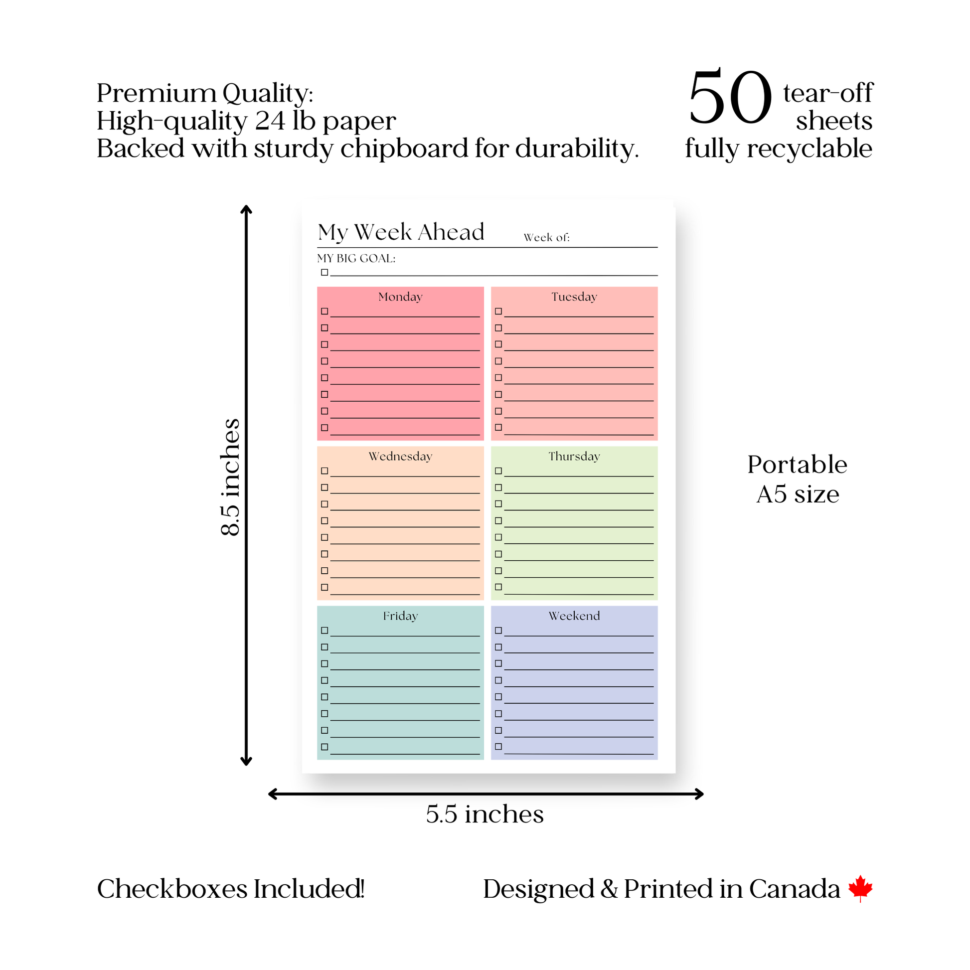 - Pages: 50 high-quality, tear-off sheets.