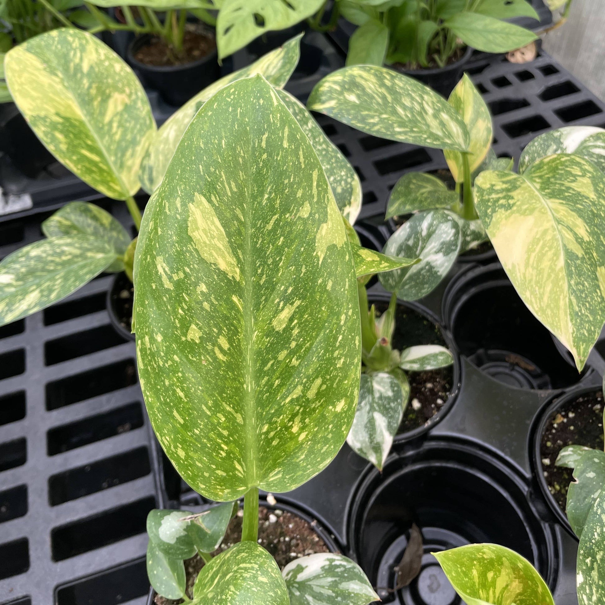 The rare and hard to find Philodendron Green Congo Nuclear Variegated features large, glossy leaves with stunning variegation. Shades of green, yellow, white, and sometimes even pink or orange adorn the leaves. The large, variegated leaves create a beautiful display!
